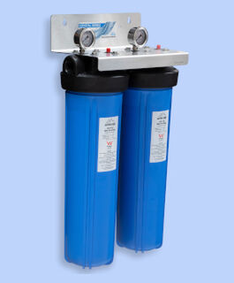 * Twin 20 inch Heavy Duty WaterMark Approved Alpine Pure Big Blue / Jumbo filter housings and heads. Housings and heads are 100 % polypropylene materials that are NSF Approved and carry the WaterMark Certificate of Conformity.